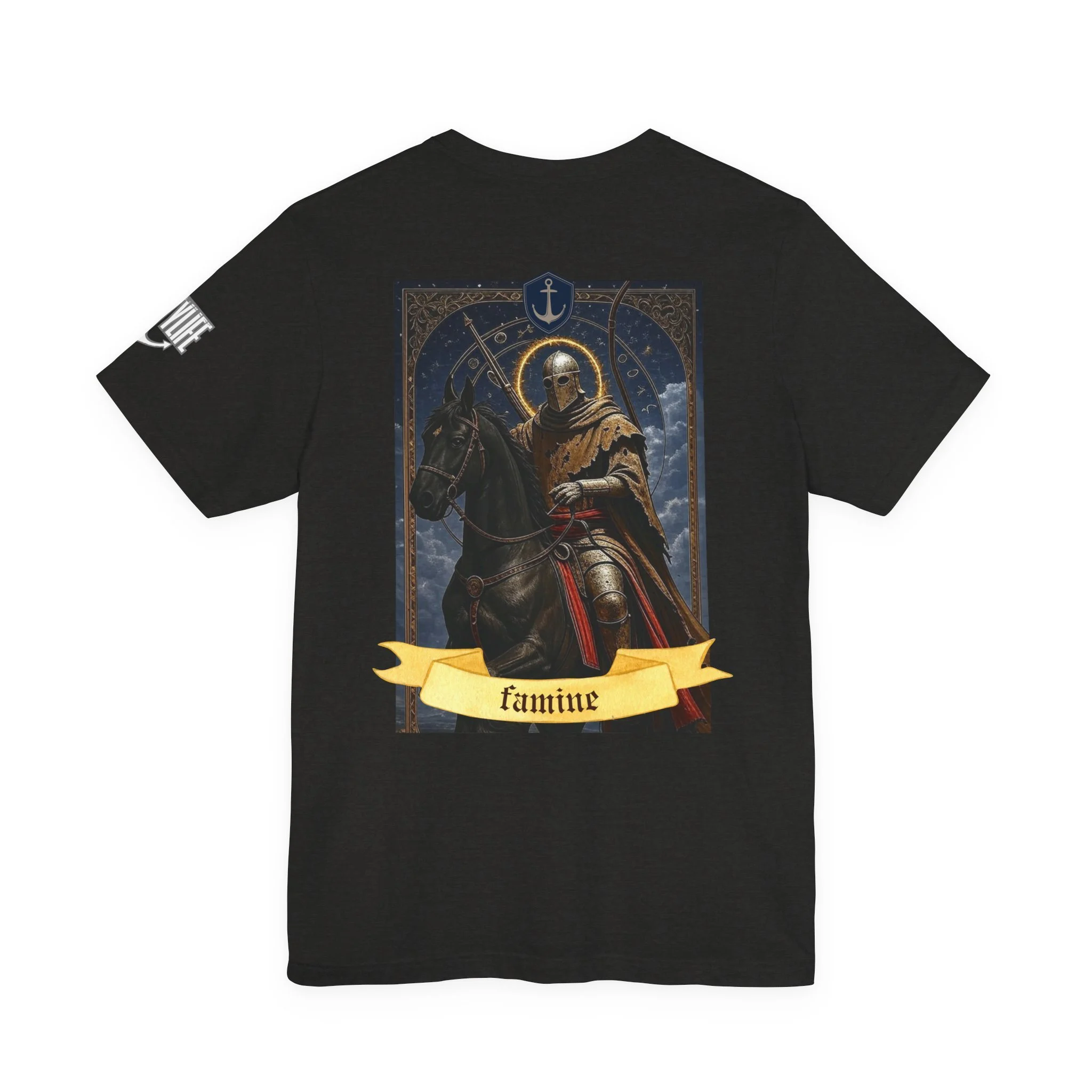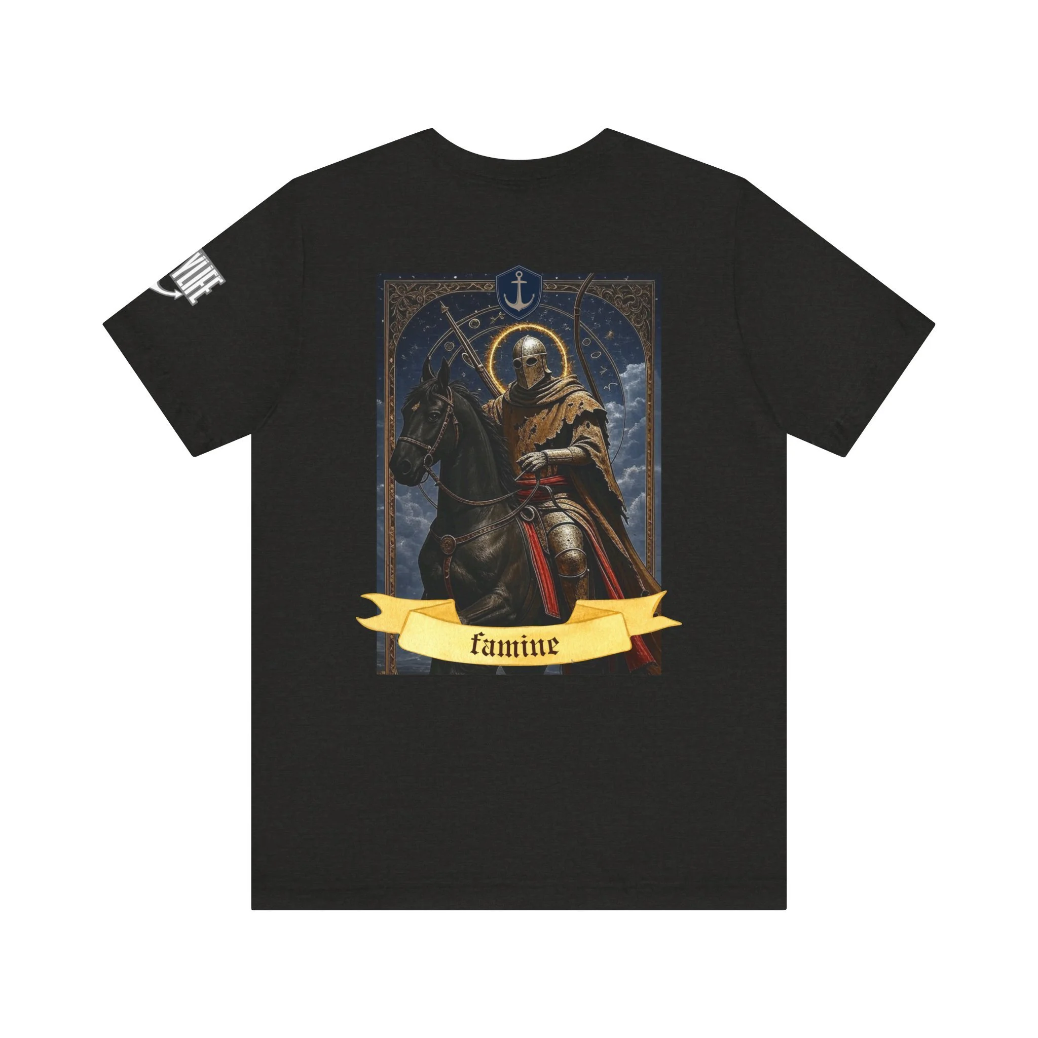 This lightweight jersey tee carries a quiet, dark charm — a modern take on tarot iconography for people who appreciate bold symbolism and wearable art. The front chest hosts a small, tasteful emblem while the back showcases a vivid Death card illustration: a skeletal figure in hooded robes astride a pale horse, framed by ornate detailing and a flowing banner. The cotton knit feels breathable and breaks in comfortably, so the graphic becomes part of your everyday rhythm. Wear it layered under a jacket for city nights, or alone to let the artwork speak. It’s for those who collect imagery with meaning, who favor subtle statements that reveal themselves up close.